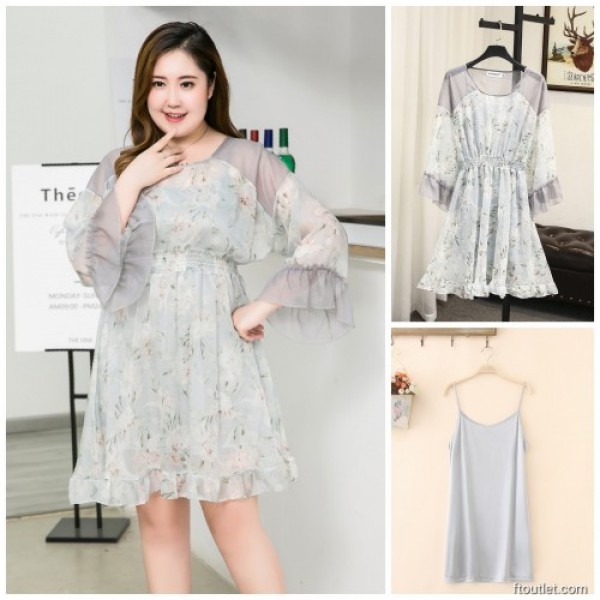 Two Piece Set Plus Size Women's Ruffled Chiffon A Line Dress+Sling