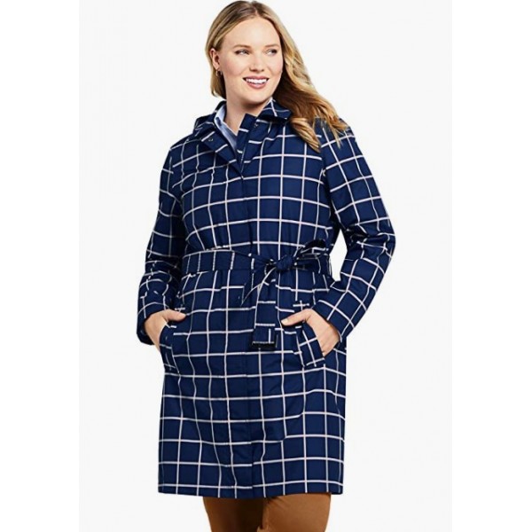 Deep Sea Windowpane Women's Hooded Waterproof Long Raincoat