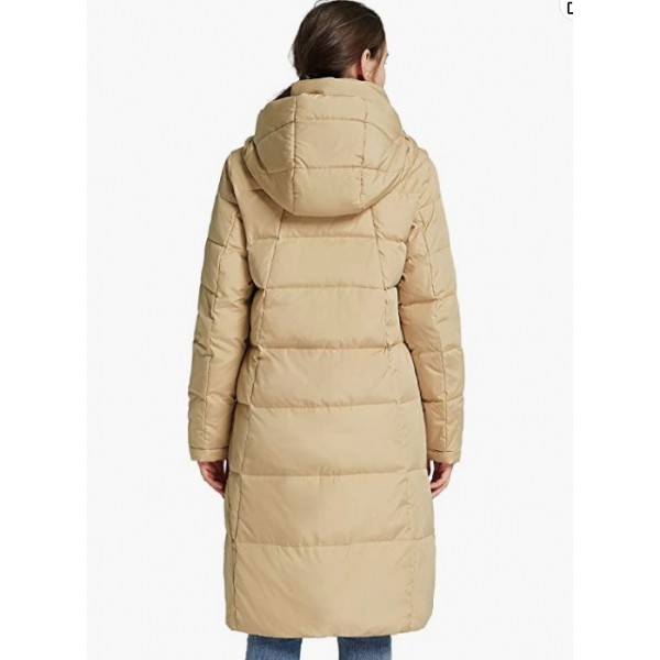 Khaki Women's Hooded Down Jacket Long Winter Coat